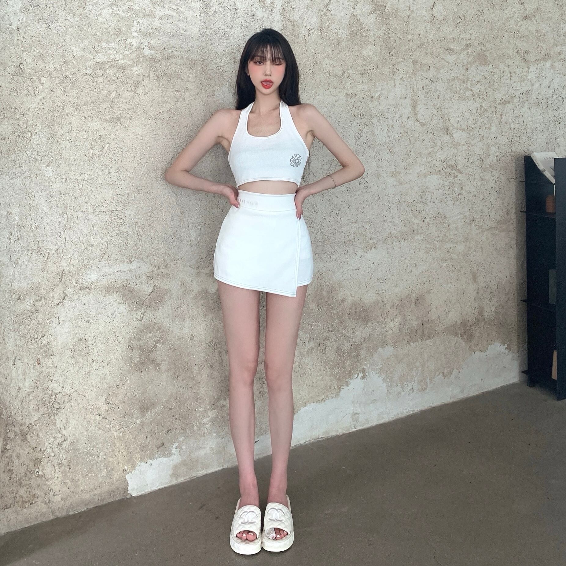 色:ホワイトホルターネックベスト,白いスカート,ネイビーホルターネックベスト,ネイビーブルーのスカート