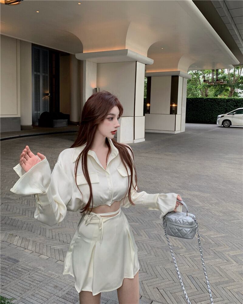 サテンシャツ サマー薄手ショートハイウェストウェストシフォンブラウス レディース ロング 夏物 香港の味44561047677