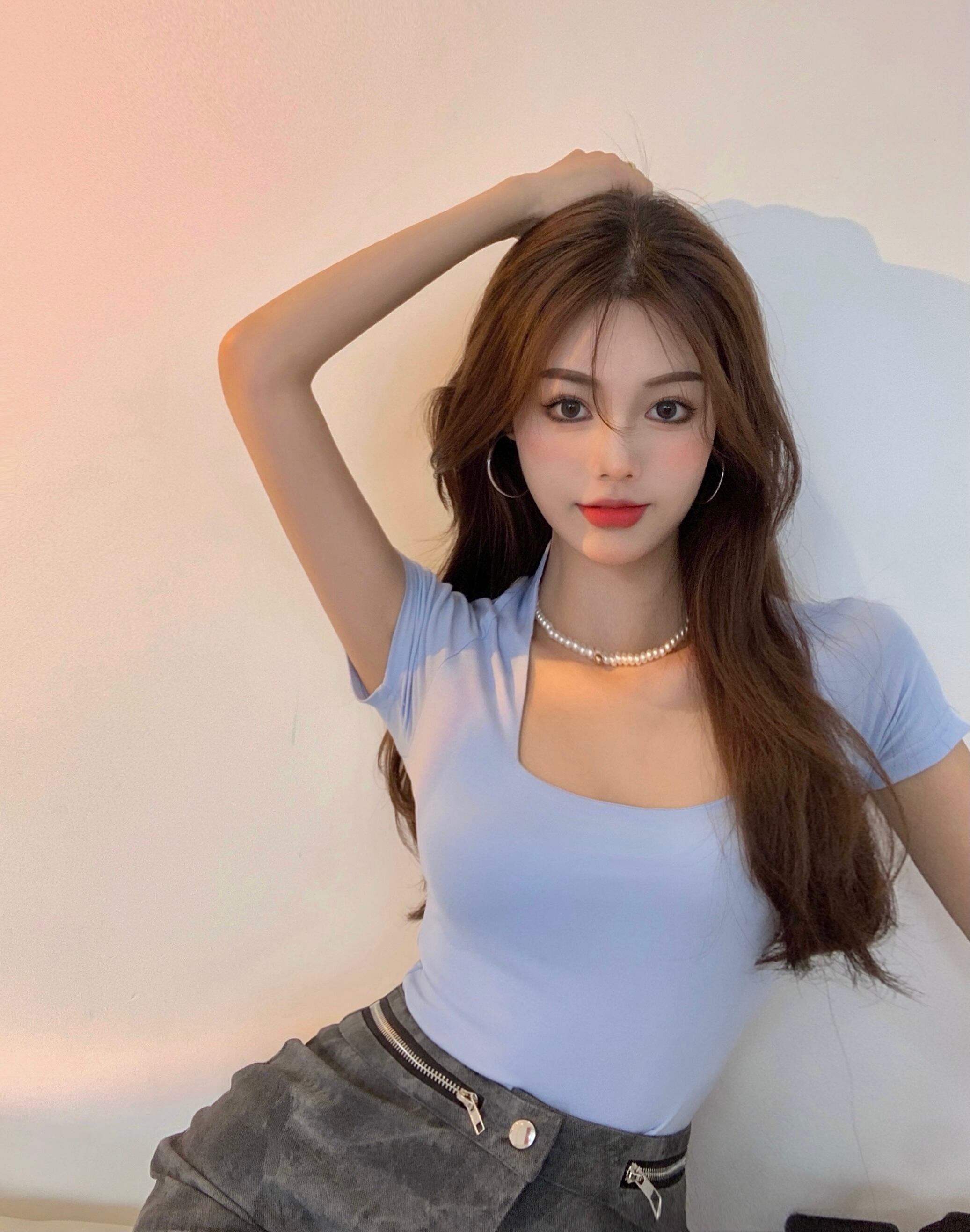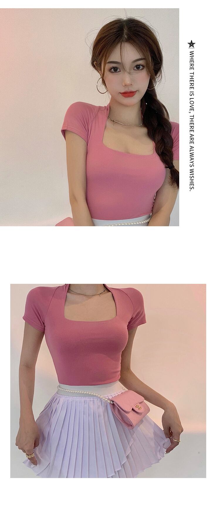 ブラウス サマーソリッド カラースタイルスタンダードTシャツ レトロ 夏物 ソリッドカラー スクウェア 香港の味42432070121