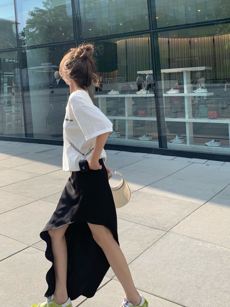 スカート ブラックサマー薄手ハイウェストレディース 夏物 ピュア 香港の味53341200797