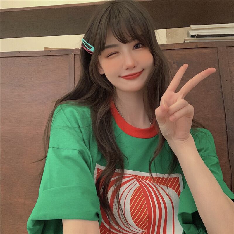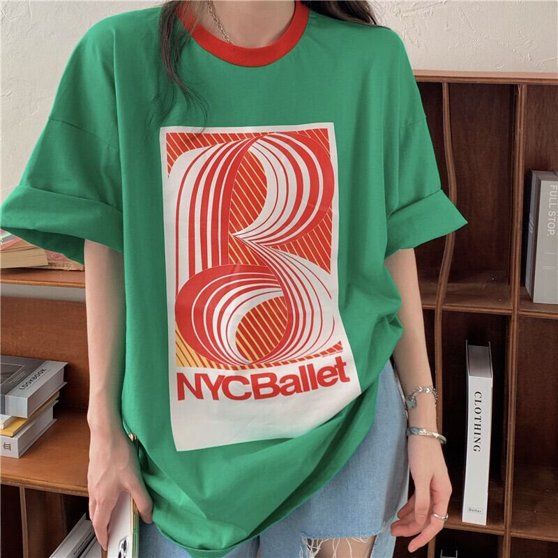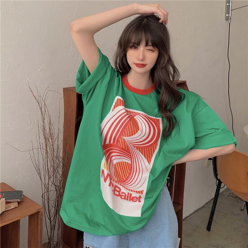スタイルTシャツ サマースタンダードプリントルーズカジュアルグリーントップス レトロ かわいい 夏物 香港の味64061960498