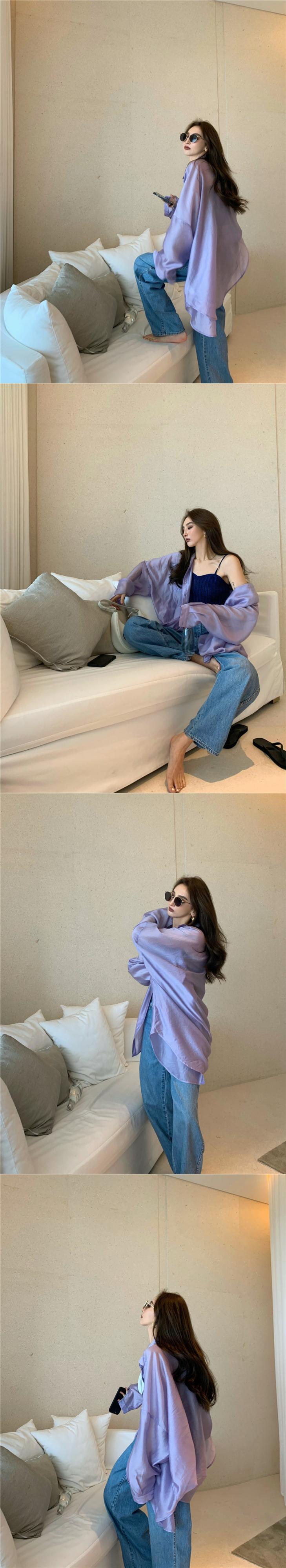 シャツ レディースサマー薄手スタイルルーズソリッド カラートップス ロング 夏物 ソリッドカラー 香港の味24977232160