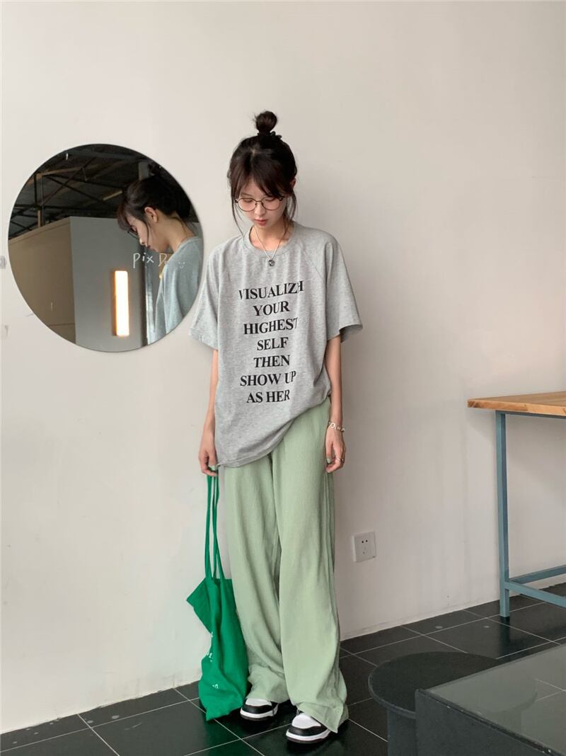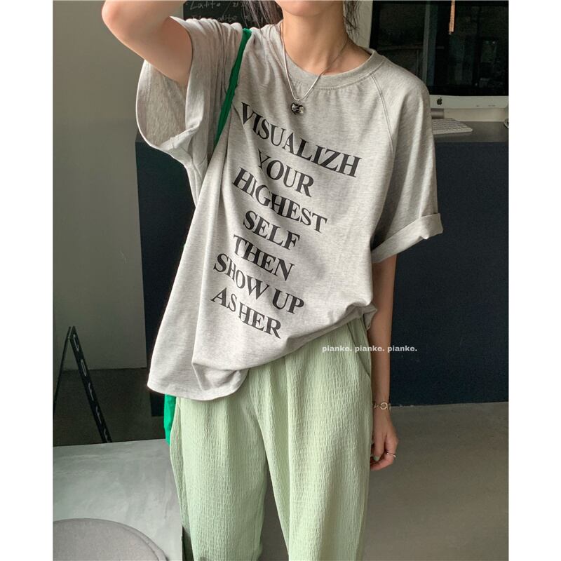 スタイルTシャツ サマープリントルーズグレーカジュアルトップス かわいい 夏物 香港の味17613135890