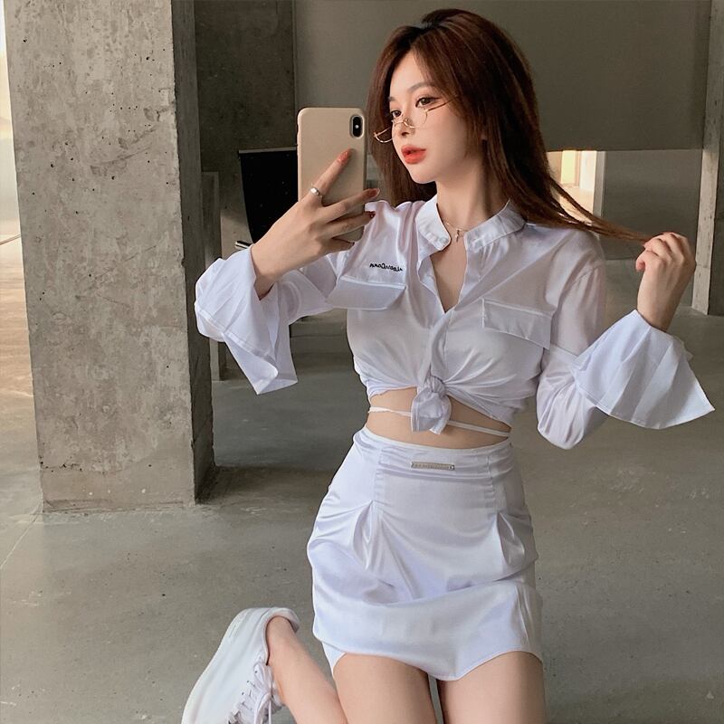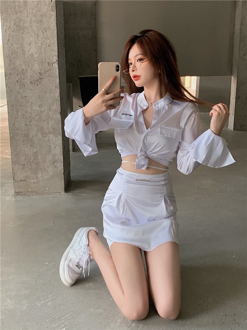 サテンシャツ ショートサマー薄手シフォンホワイトトップス 夏物 シルク 香港の味92478193311