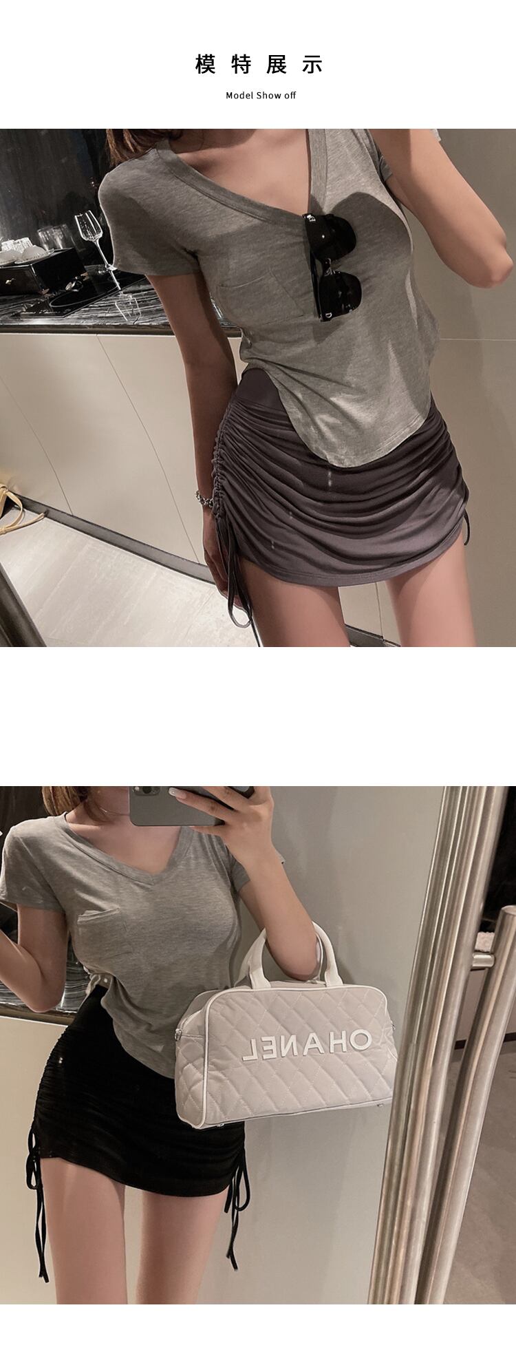 Tシャツ Vネックスタイルサマースリム薄手グレークロップドトップス 夏物 香港の味33219576493