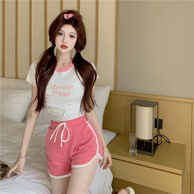 Tシャツ サマー薄手スタイルショートスリムトップス レッド 刺繍 大人ガーリー スウィート キュート カジュアル 夏物 香港の味10102321120