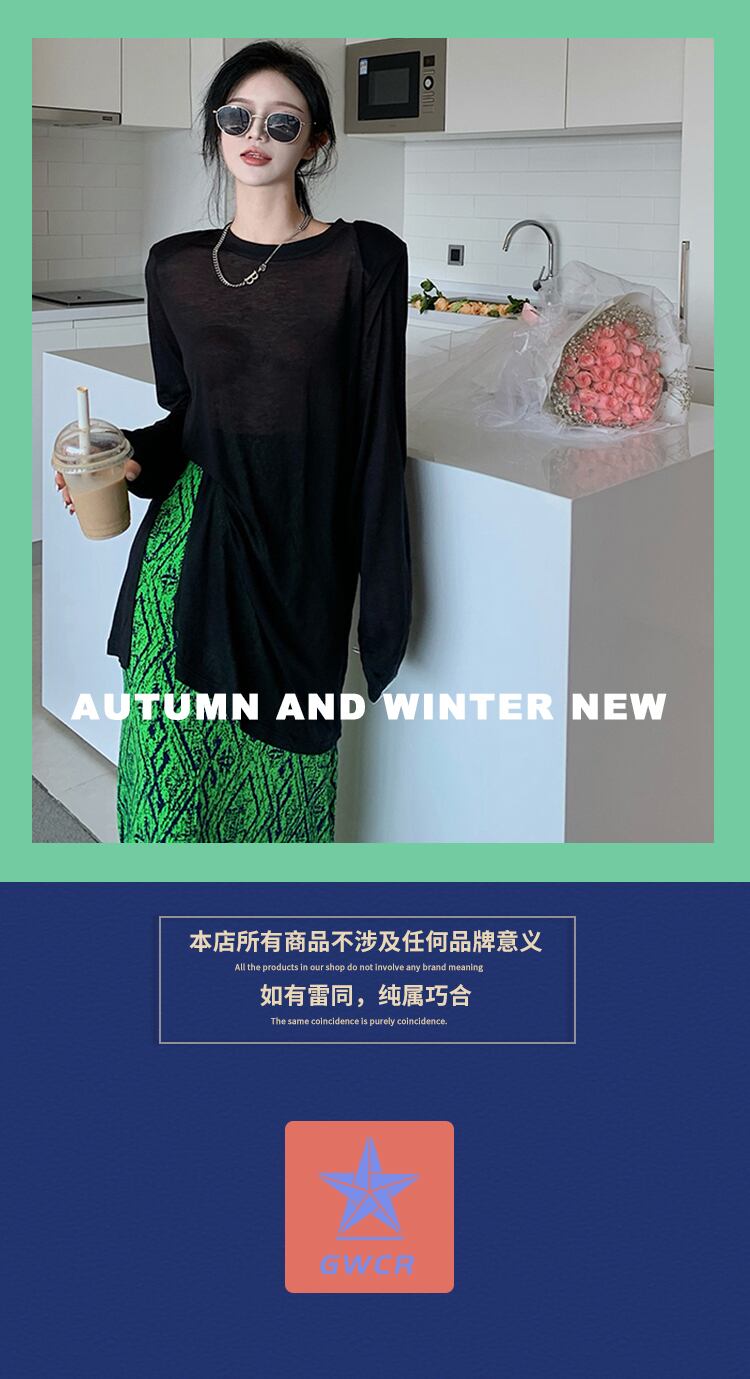 シャツ サマー薄手ルーズTシャツ ブラックブラウス レディース ロング 夏物 シルク 香港の味2972937100