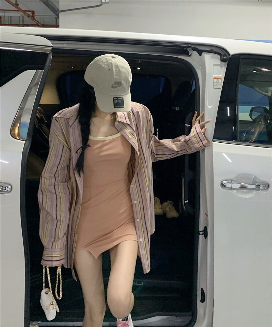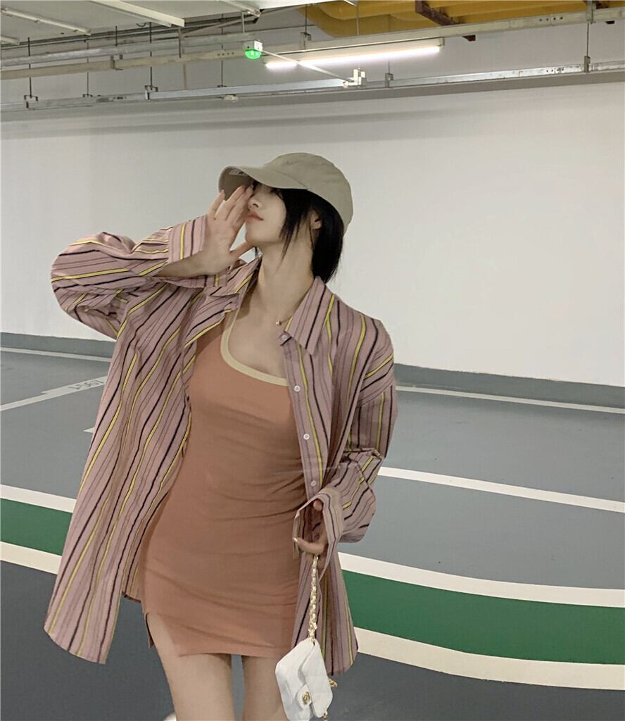 ストライプルーズシャツ スリムドレス ピンク ピュア 香港の味72806520035