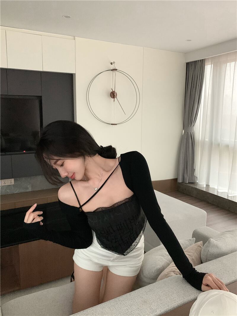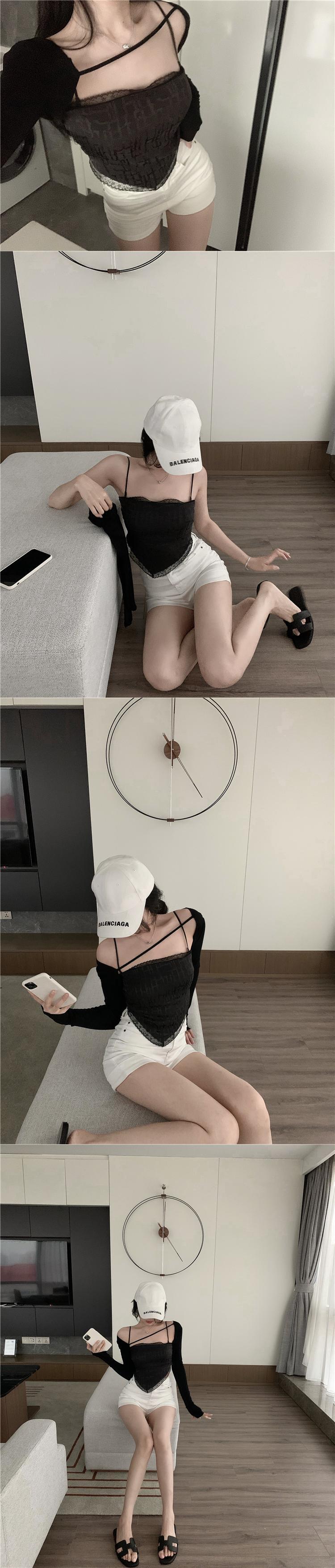 レースサマー薄手トップス ショートスリム 夏物 香港の味49710128337