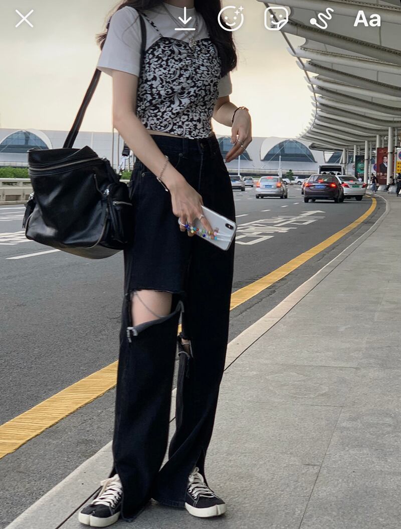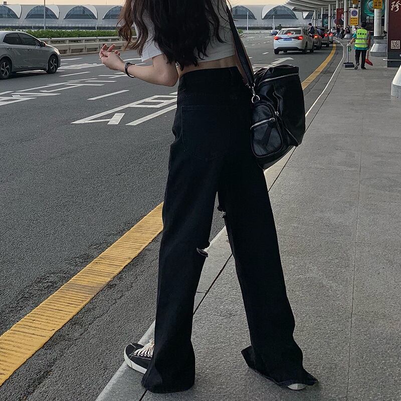 ジーンズ レディースサマースタンダードパンツ ワイドレッグルーズハイウェストウェストスリム レトロ 夏物 ワイドパンツ 香港の味91873833190