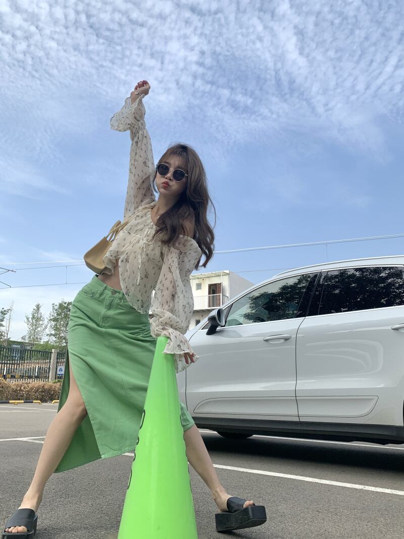 フローラルシャツ レディースサマー薄手プリーツシフォンショートトップス ロング 夏物 花柄 香港の味14804620140
