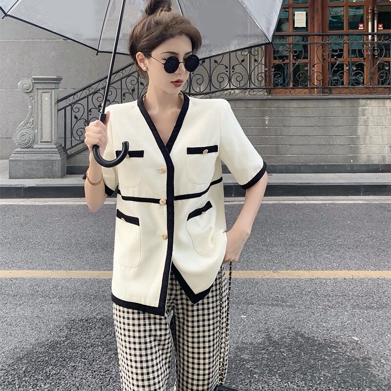 ジャケット サマー薄手スタンダードVネックルーズホワイトトップス レディース レトロ 夏物 香港の味13232271370