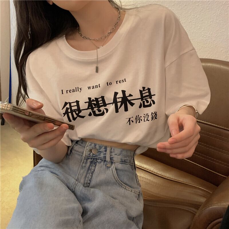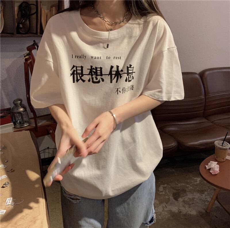 スタイルTシャツ プリントルーズカジュアルサマーホワイトトップス かわいい 夏物 香港の味90383500079