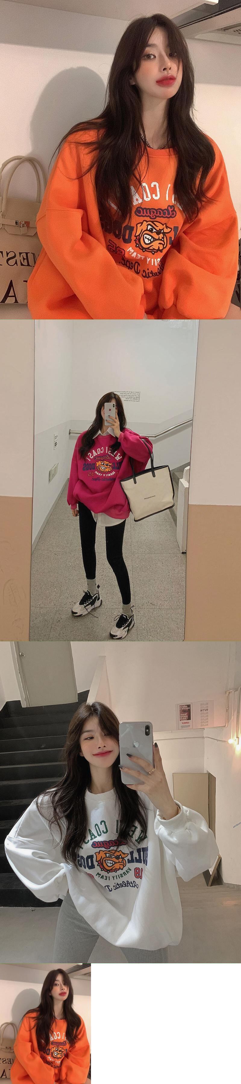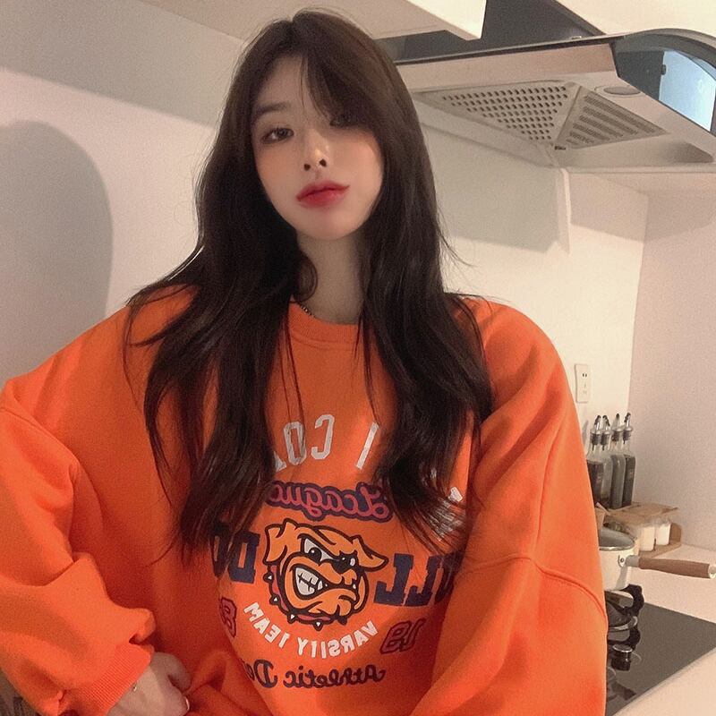 オレンジセーター スタイルスプリングルーズプリントカジュアルトップス ロング 春物 香港の味37930143696