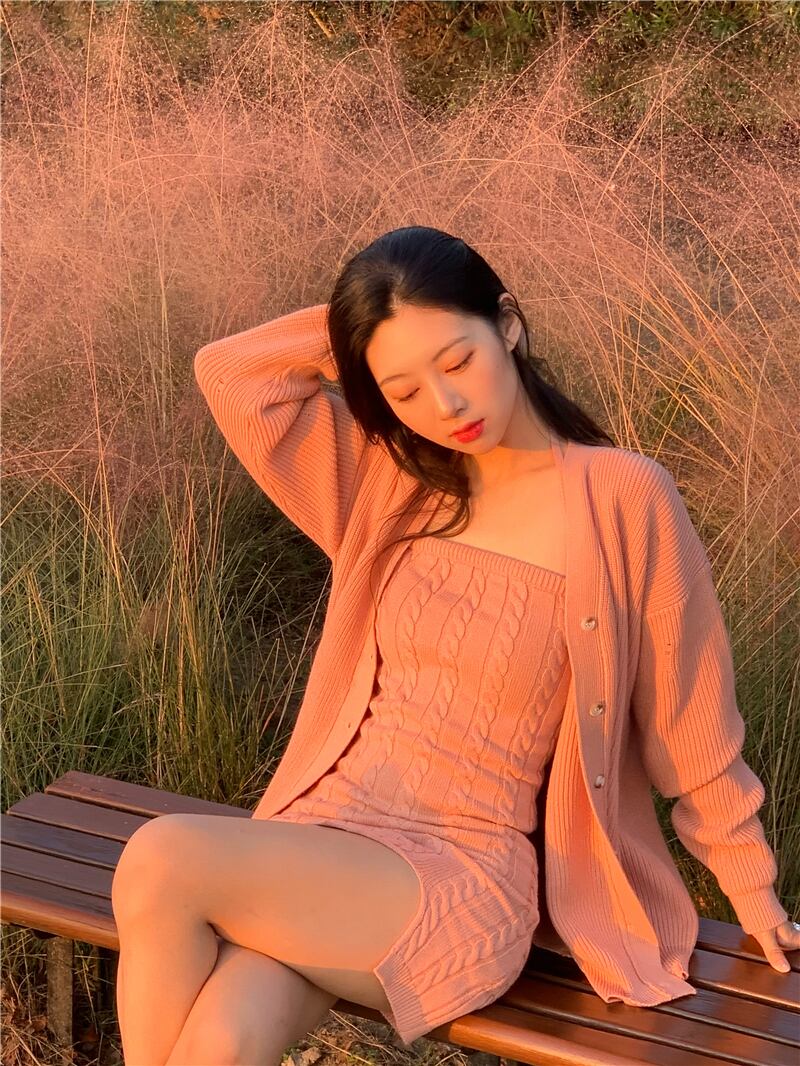 セーター ルーズVネックニットカーディガンスプリングトップス コート ピンク 春物 香港の味4808124724