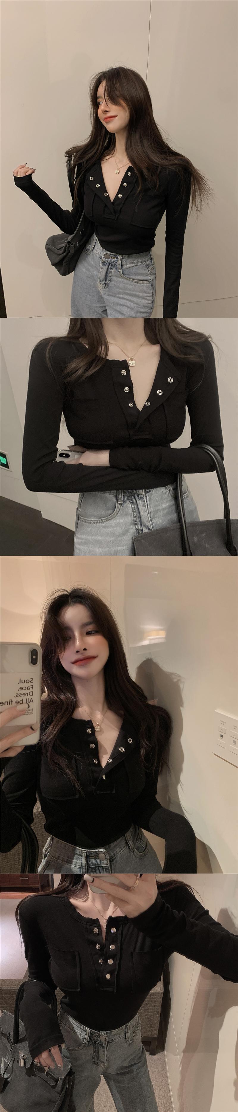 シャツ スタイルスプリングVネックショートホワイトTシャツ トップス ロング 春物 香港の味12676606682