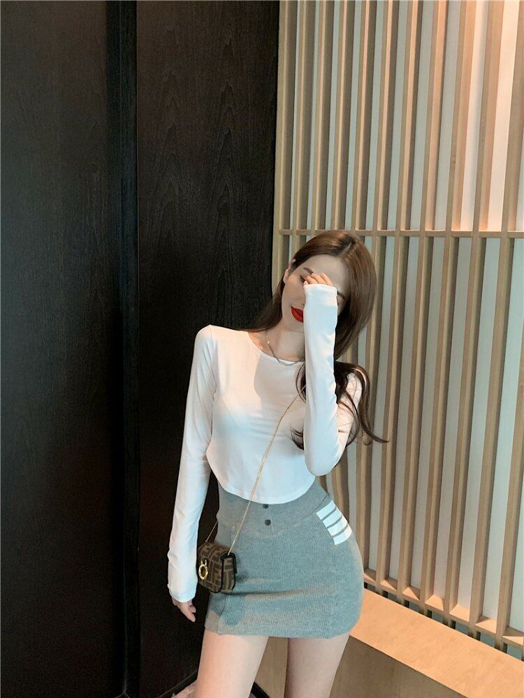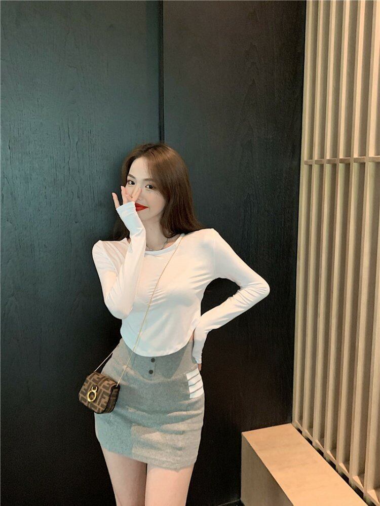 ホワイトTシャツ スリムトップス ロング スプリング 春物 香港の味18267768556