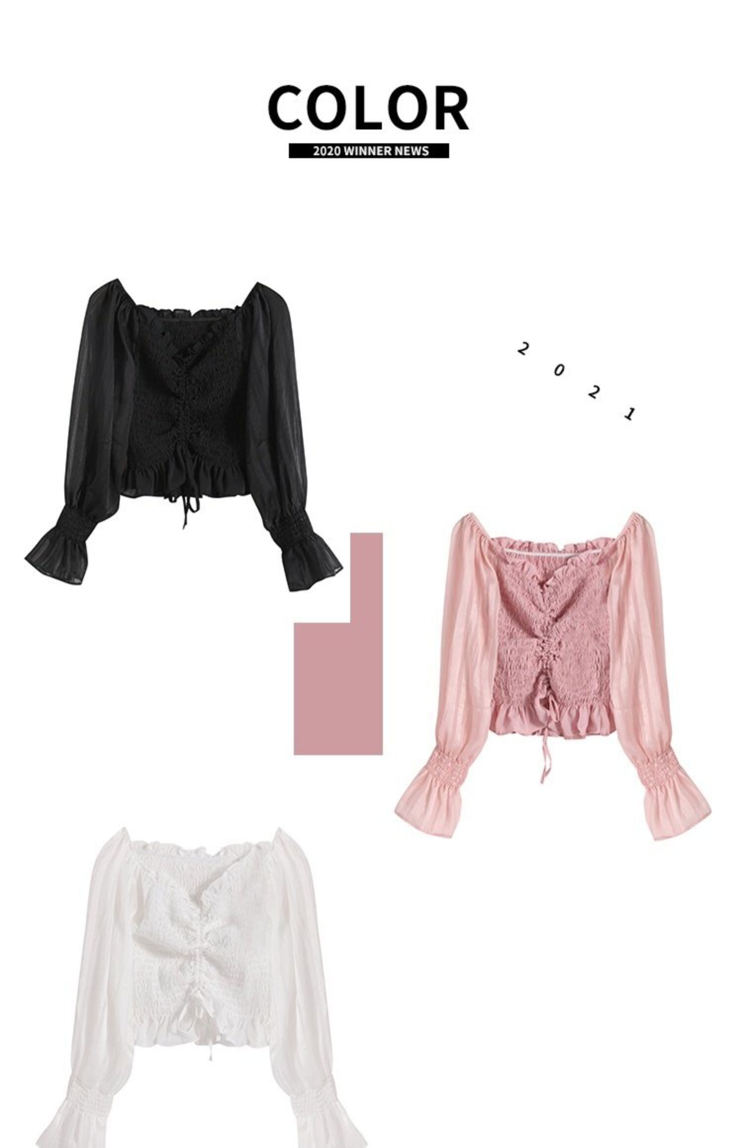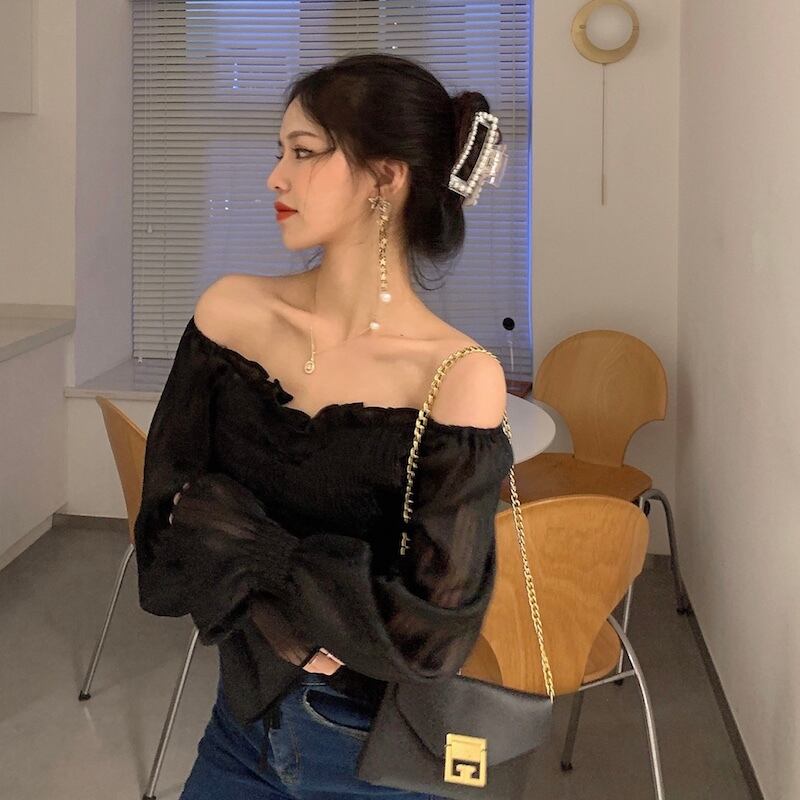 シャツ サマー薄手ショートホワイトシフォン ロング 大人ガーリー スウィート キュート カジュアル 夏物 オフショルダー 香港の味58445916395