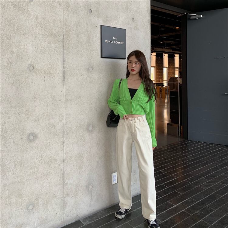 ニットカーディガンショート薄手Vネックスプリングウェストスリーブセーター コート トップス 春物 香港の味58681421464