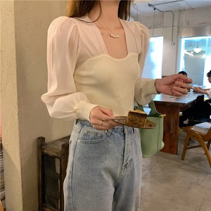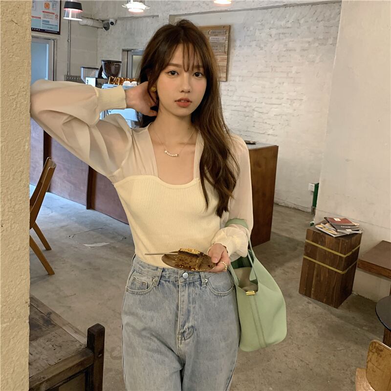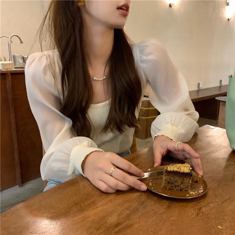 セーター シフォンサマー薄手スタイルブラウス レディース ロング 夏物 スクウェア ステッチ 香港の味44619688020