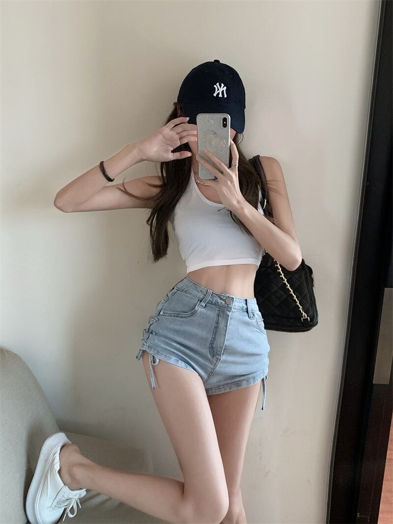 ギャザーショーツ サマー薄手ハイウェストAラインパンツ 夏物 ブルマー ヨーロピアン 香港の味90666034393