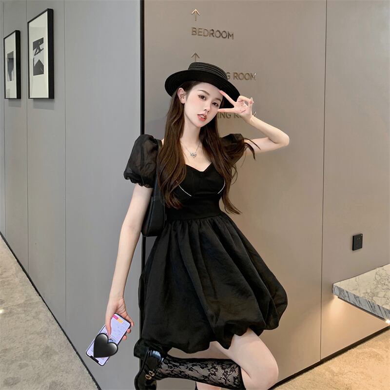 ドレス スタイルメッシュウェストスカート サマースタンダードブラックレディース レトロ 夏物 香港の味79782690180