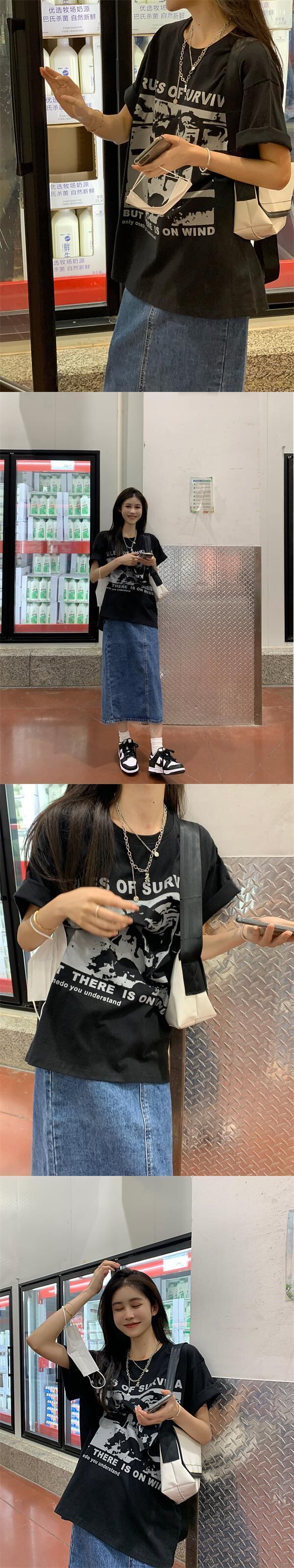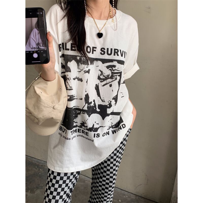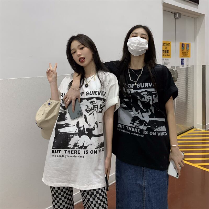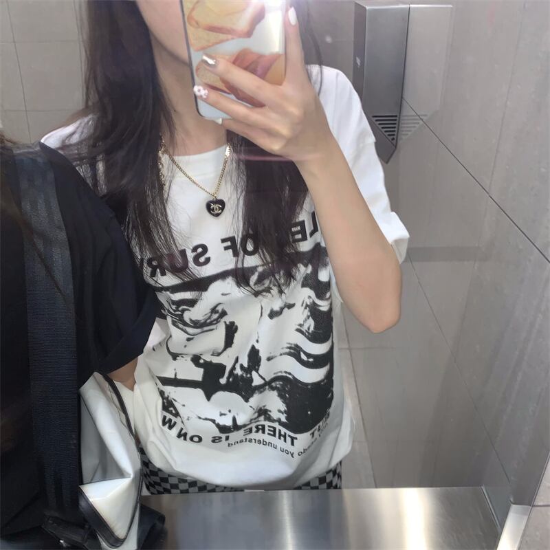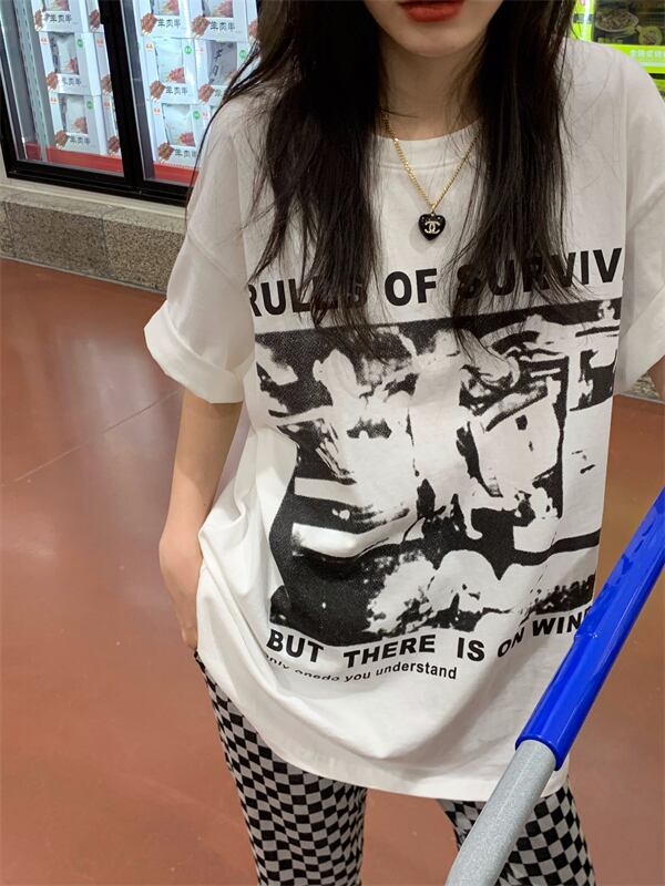 プリントTシャツ レディースカラーサマー薄手ルーズカジュアルラウンドネックトップス 夏物 Oネック 香港の味99516922741