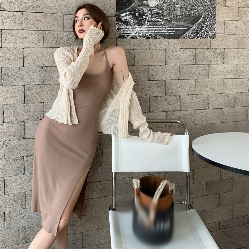 ホワイトニットセーター ショートカーディガンサマー薄手スリムブラウス ロング 夏物 香港の味99853495714