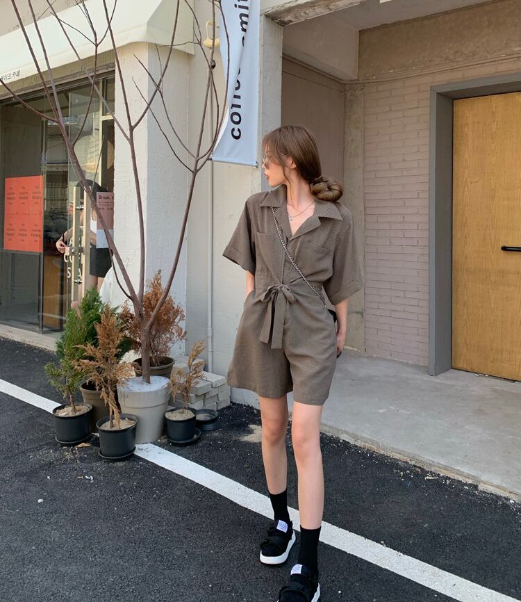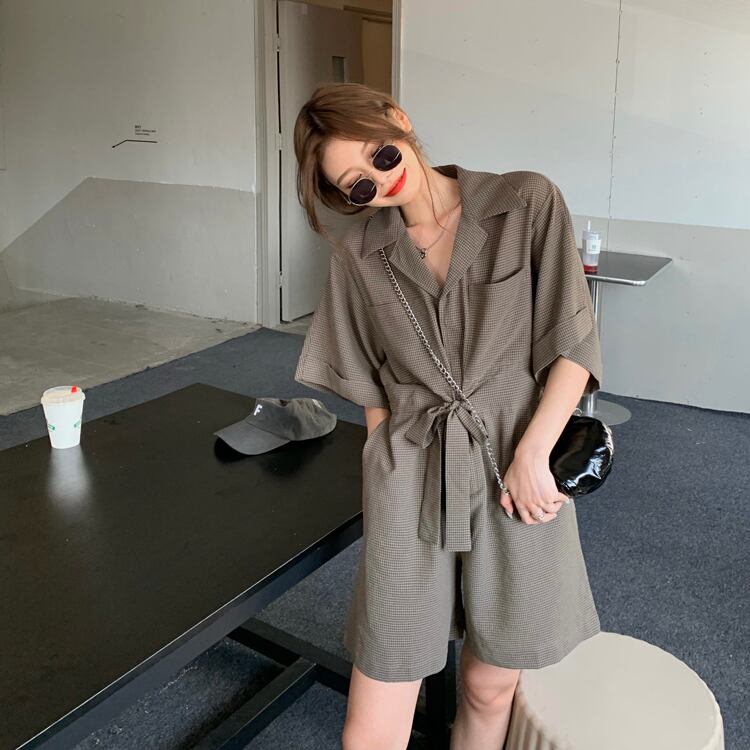 格子柄ジャンプスーツ オールインワン サマー薄手ハイウェストウェストワイドレッグショーツ スタイルルーズパンツ 夏物 ブルマー ワイドパンツ 香港の味39267489191