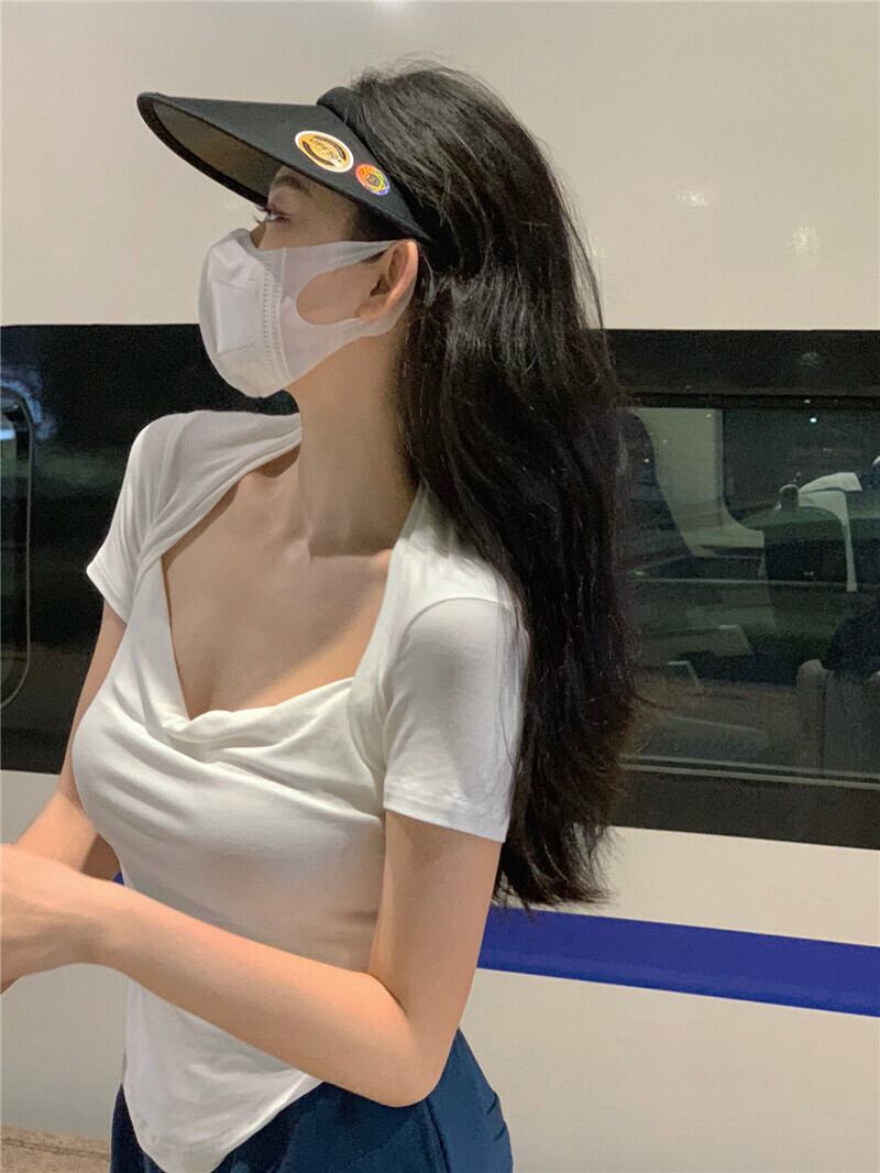 カラーTシャツ 薄手ホワイトサマースリムトップス 夏物 スクウェア 香港の味78682303910