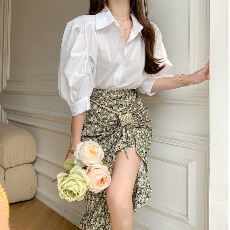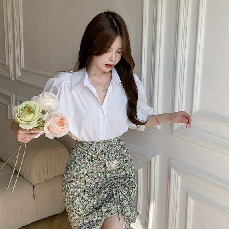 スリーブシャツ サマー薄手カラールーズホワイト半袖トップス ショート ハーフスリーブ 夏物 香港の味78134891437