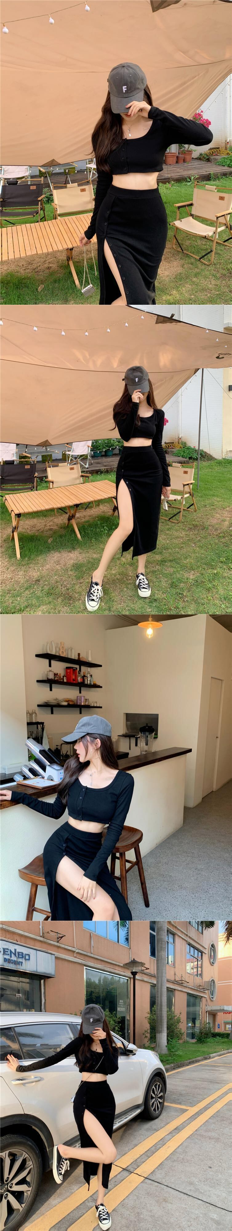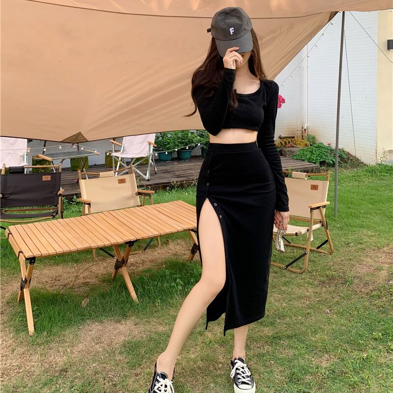 スリットスカート サマー薄手ハイウェストウェストスリム 夏物 ピュア 香港の味62796424621