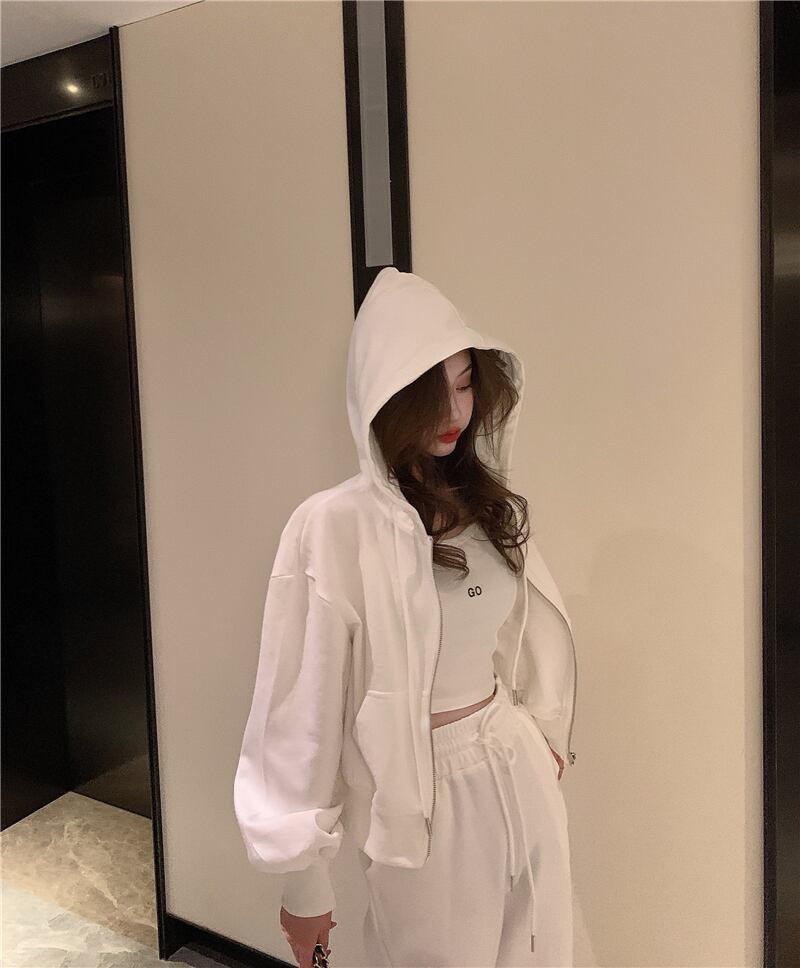 セーター ジャケット オータム薄手ジッパーフードカーディガンカジュアルショートトップス ロング 秋物 香港の味60074131931