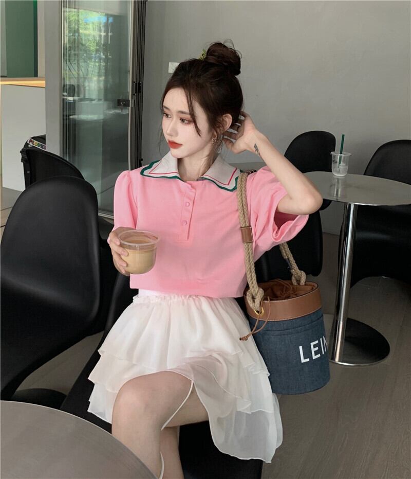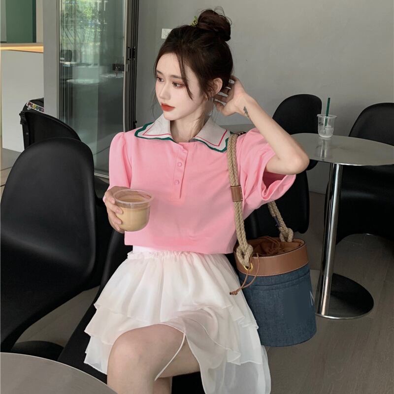 カラーTシャツ スリーブサマー薄手ルーズカジュアルトップス ピンク 夏物 香港の味62488160448