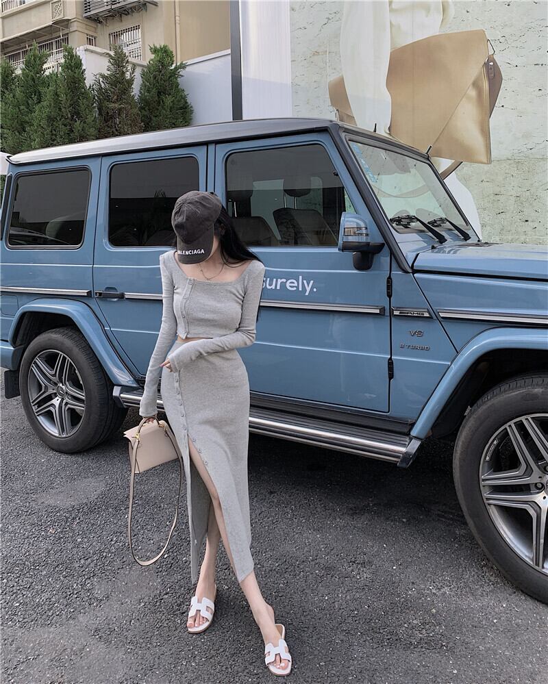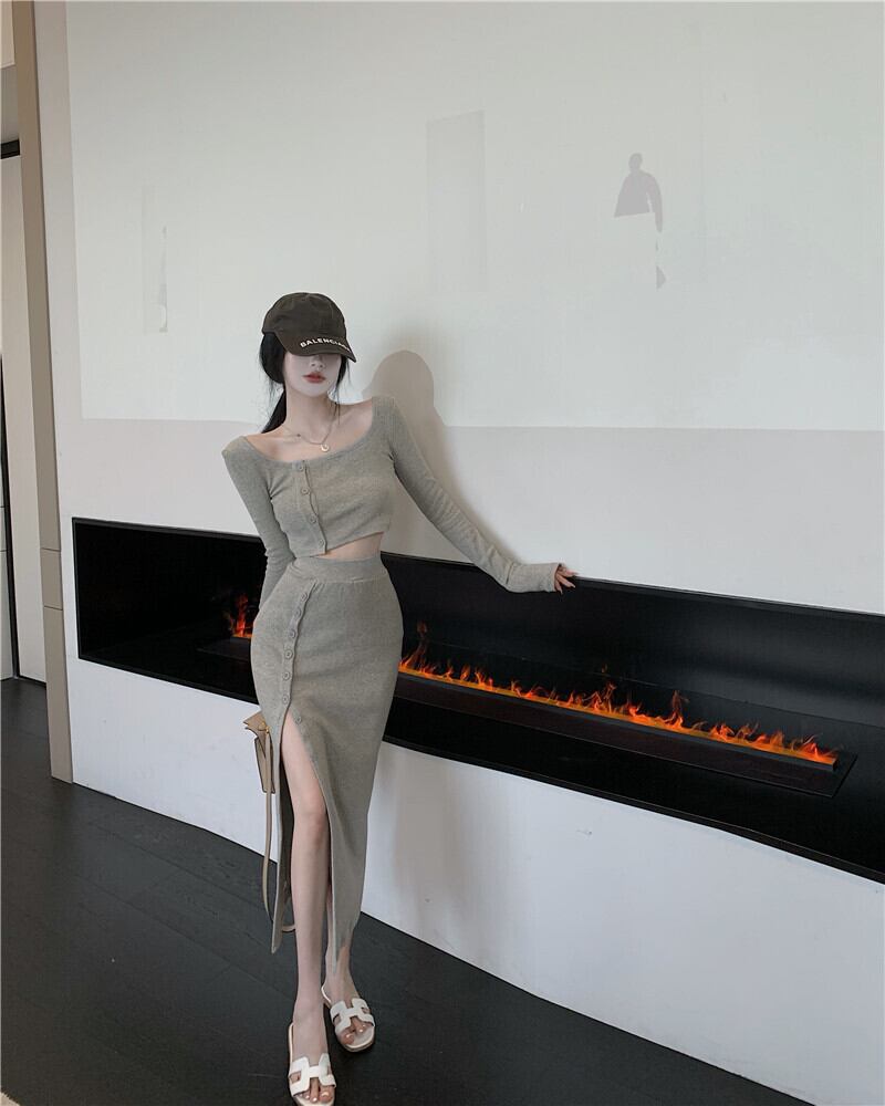 色:黒スカート,ブラックトップ,グレースカート,グレートップ