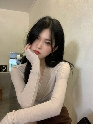 Tシャツ サマー薄手Vネックショートトップス レディース ロング 大人ガーリー スウィート キュート カジュアル 夏物 シルク 香港の味55958046772