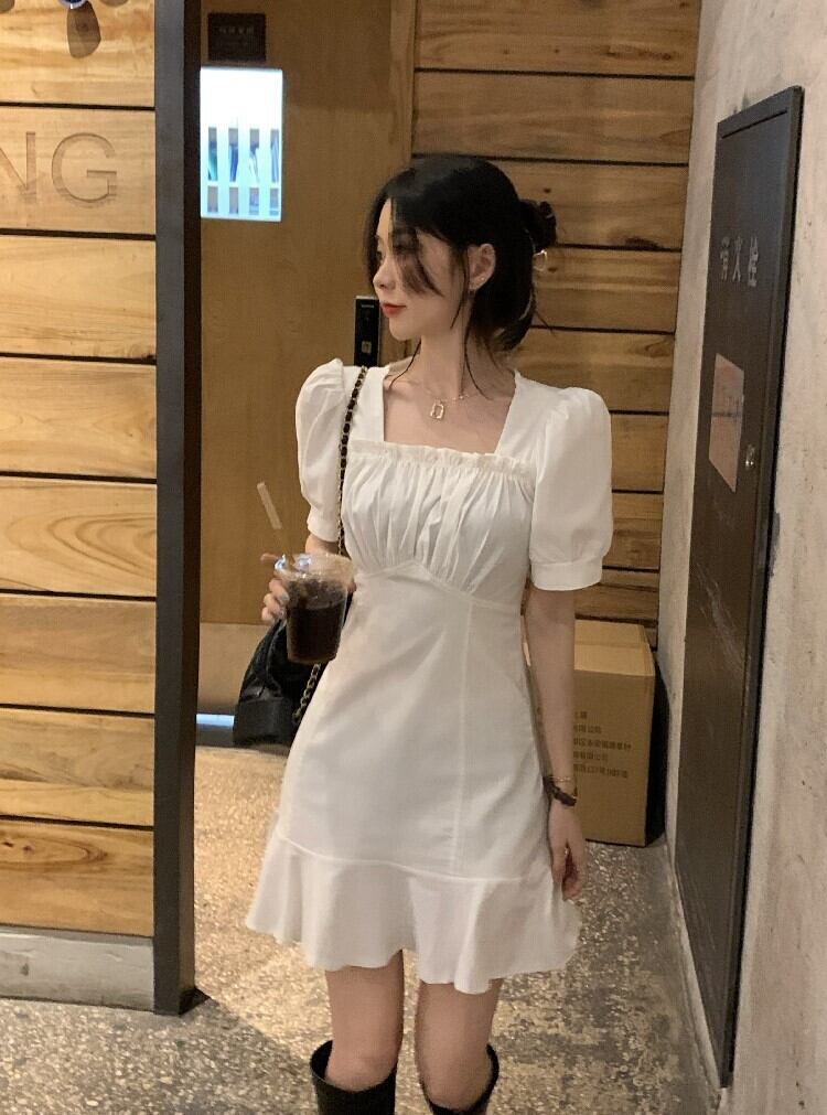 ドレス サマースカート ウェストラッフルレディース 大人ガーリー スウィート キュート カジュアル 夏物 フラワーデザイン スクウェア 香港の味18074824087