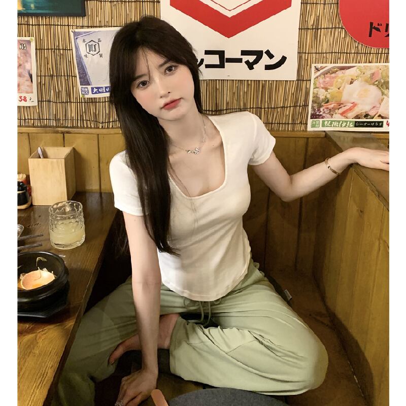 Tシャツ サマー薄手カラートップス 夏物 ピュア スクウェア 香港の味50703457576