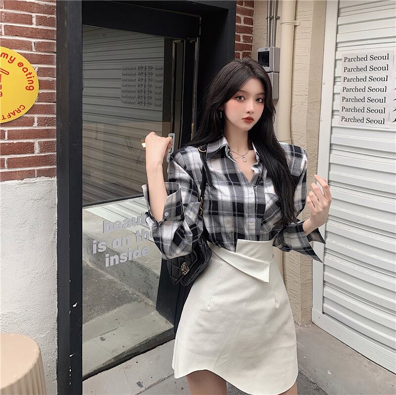 格子柄シャツ 薄手ルーズスタイルサマートップス ロング ストリート 夏物 香港の味13856977797