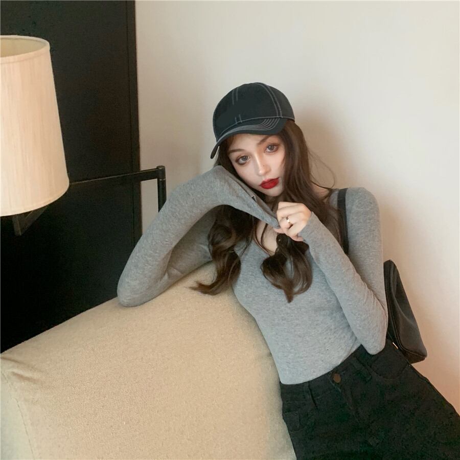 シャツ スリム薄手ソリッド カラースプリングトップス Tシャツ ロング 春物 ソリッドカラー 香港の味9671571057