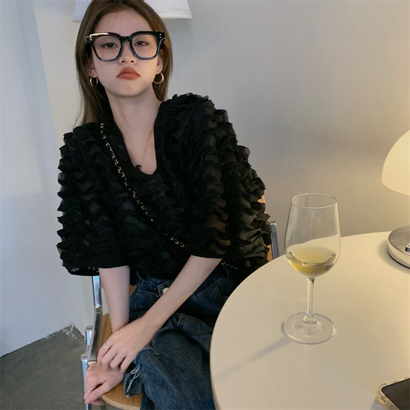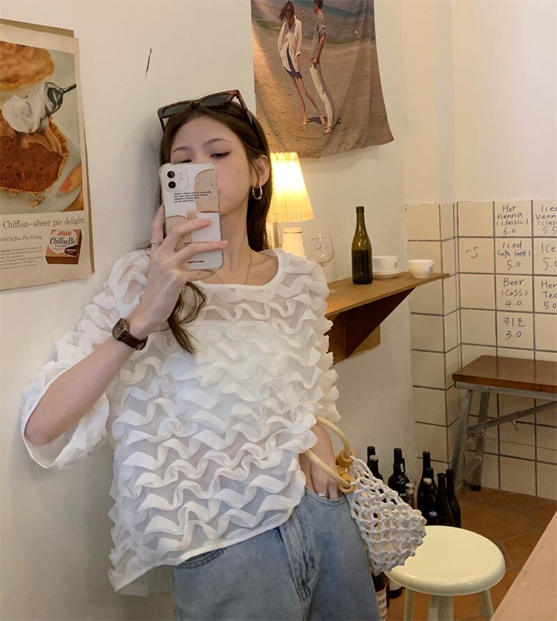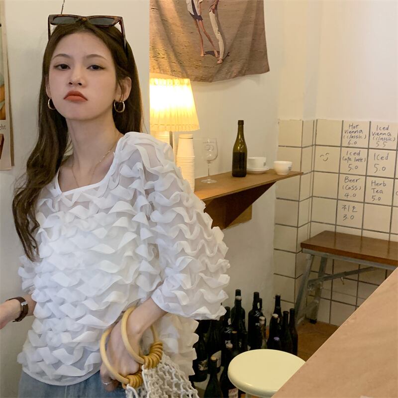 シフォンシャツ 薄手ブラウス サマートップス 夏物 スクウェア 香港の味11901049927