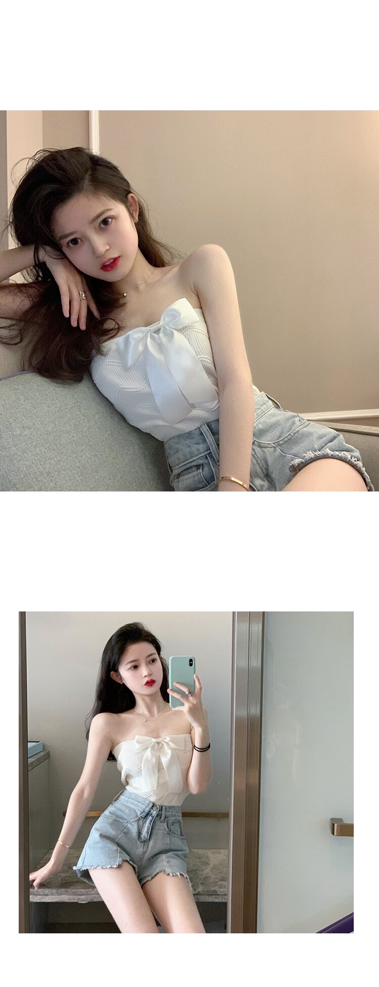 トップス スプリングリボンストラップレスレッドバック 春物 香港の味35959406613