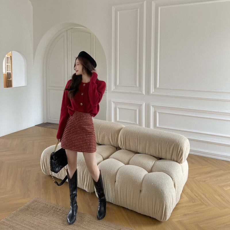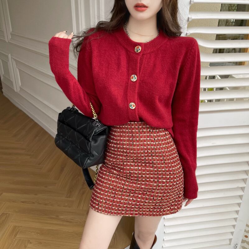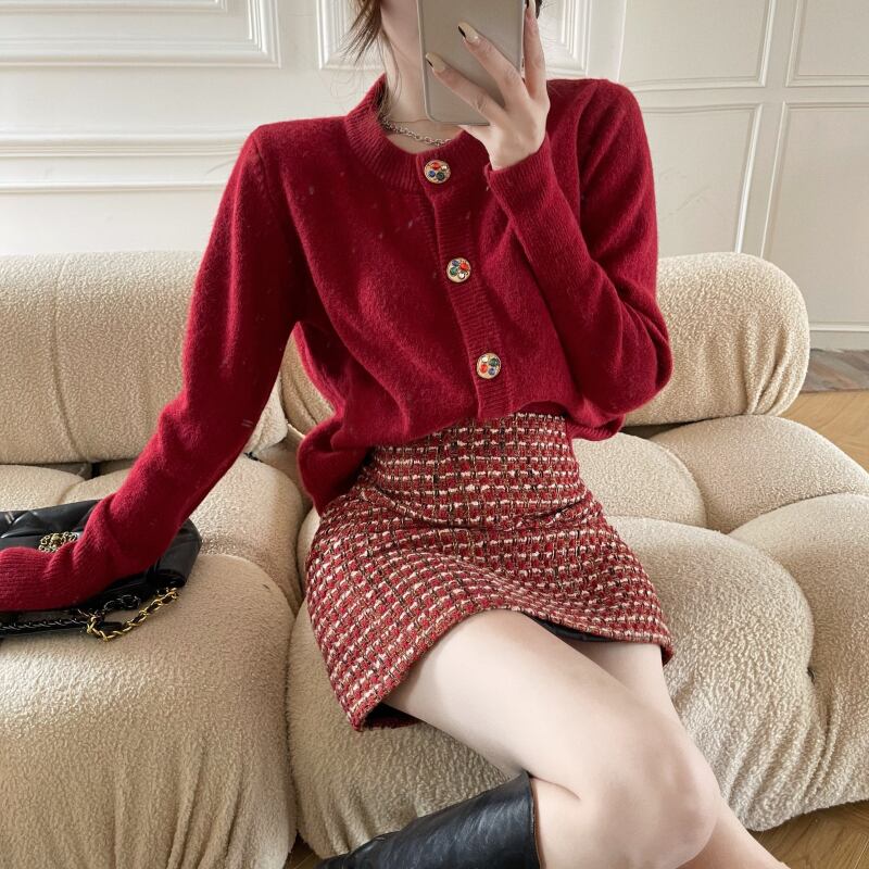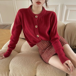 セーター レディーススタンダードレッドニットカーディガンスプリングショートジャケット レトロ 春物 香港の味57915699194