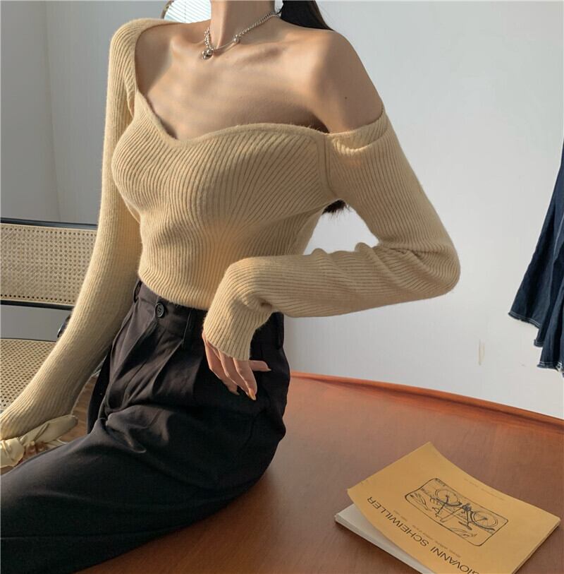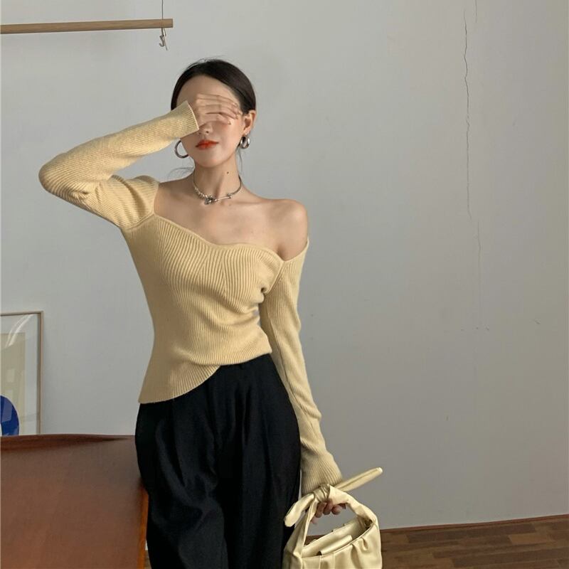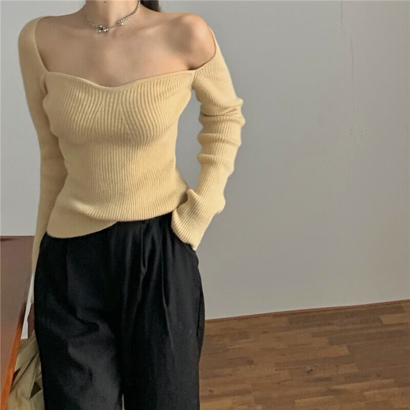 セーター スプリングオータムスタンダードスリムニットトップス ロング レトロ 春物 秋物 スクウェア 香港の味7643431337