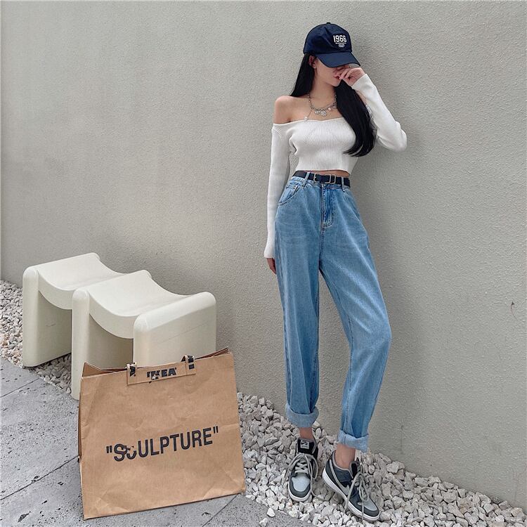 ウェストジーンズ スプリングスタンダードスタイルブルールーズスリムパンツ レトロ 春物 香港の味63562109439