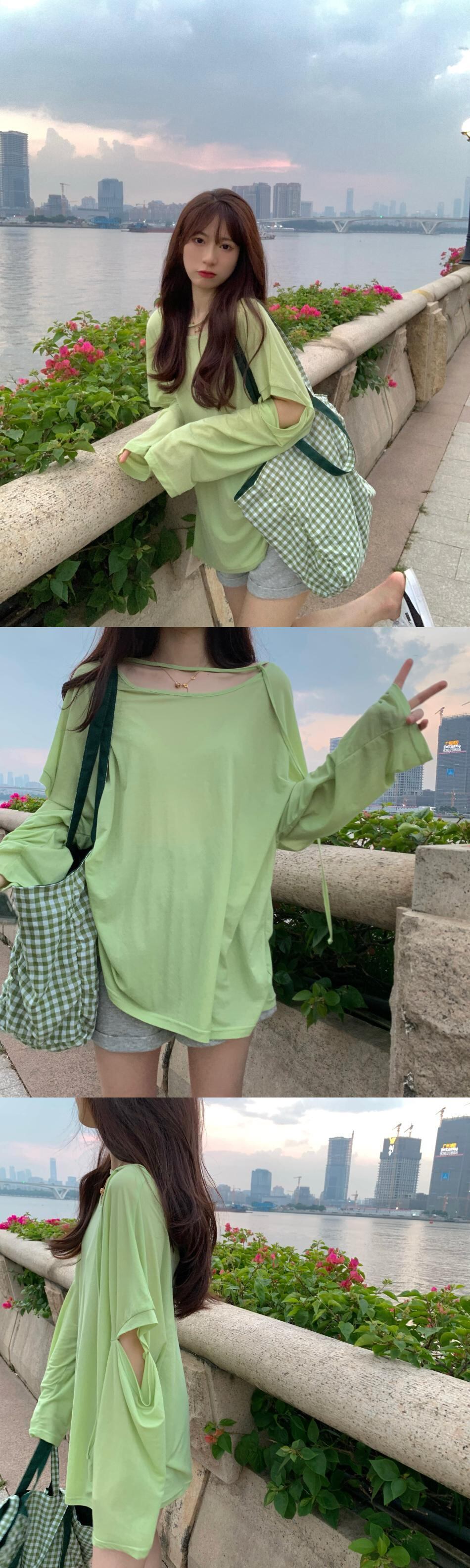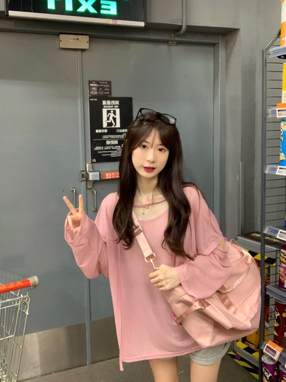 Tシャツ オータムルーズスタイルソリッド カラートップス ロング レース 秋物 レースアップ ソリッドカラー 香港の味1808814107