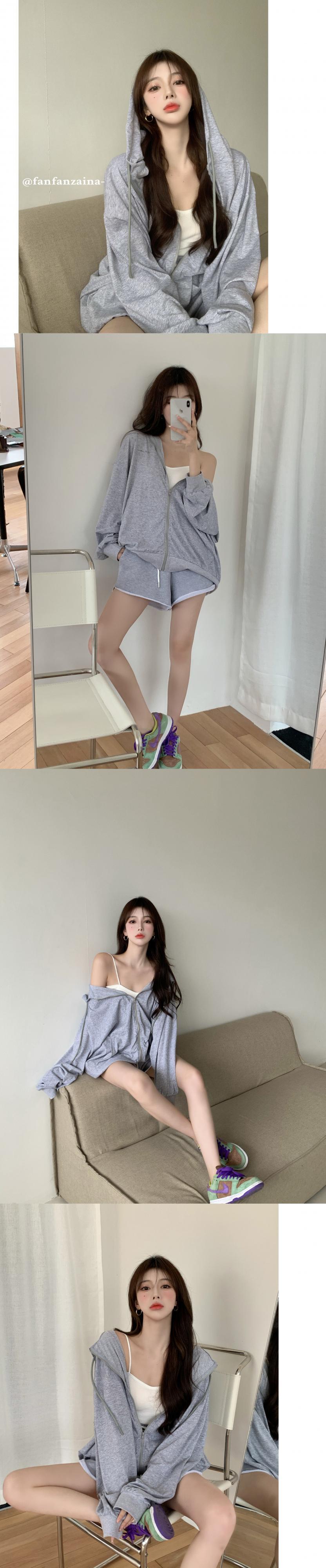 色:ホワイトショーツ,白いカーディガン,グレーのショートパンツ,グレーのカーディガン