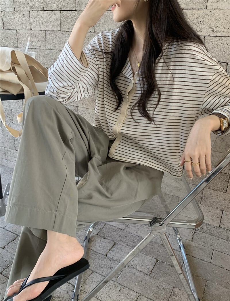 色:ストライプトップ,カジュアルパンツ