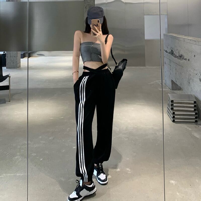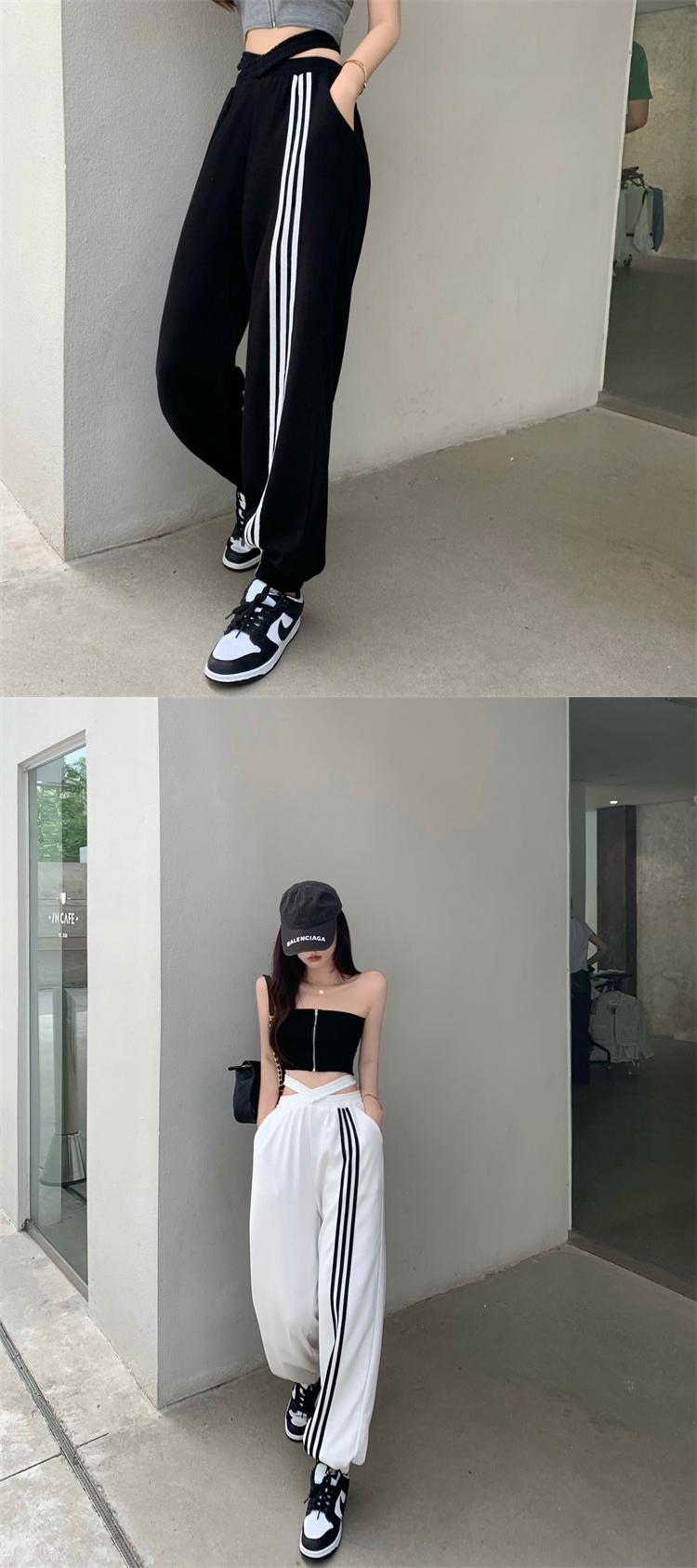 ストライプパンツ オータムウェストハイウェストカジュアルルーズ ストリート 秋物 香港の味42298161423