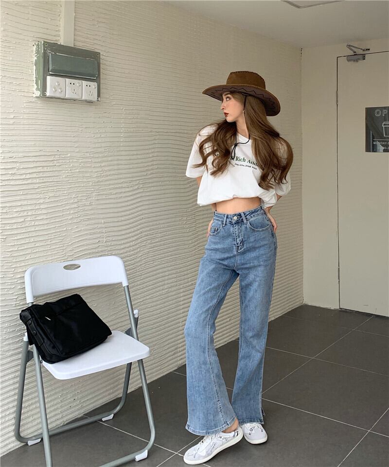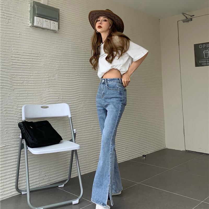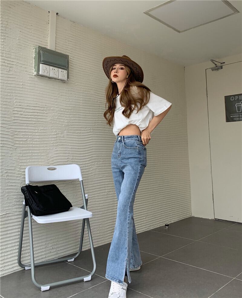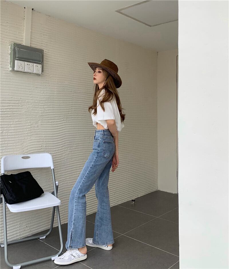 スリム薄手ブルースリットジーンズ 香港の味21260191315